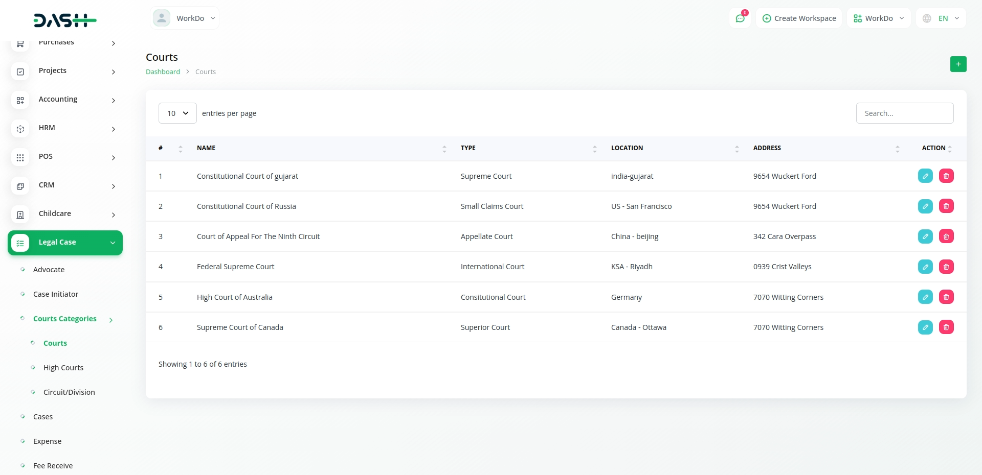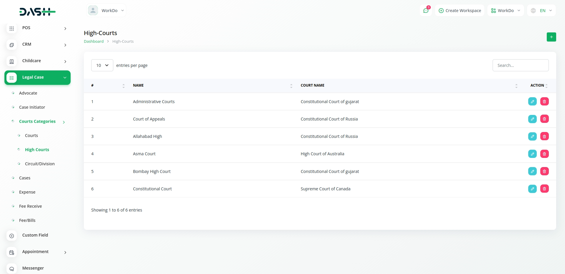 The Legal Case Management module in Dash SaaS is a dedicated tool for simplifying legal processes. With a user-friendly interface, it allows users to efficiently manage information related to advocates, case initiators, and court categories. This module serves as a central hub, facilitating the organization and accessibility of critical legal data within the broader Dash SaaS platform.