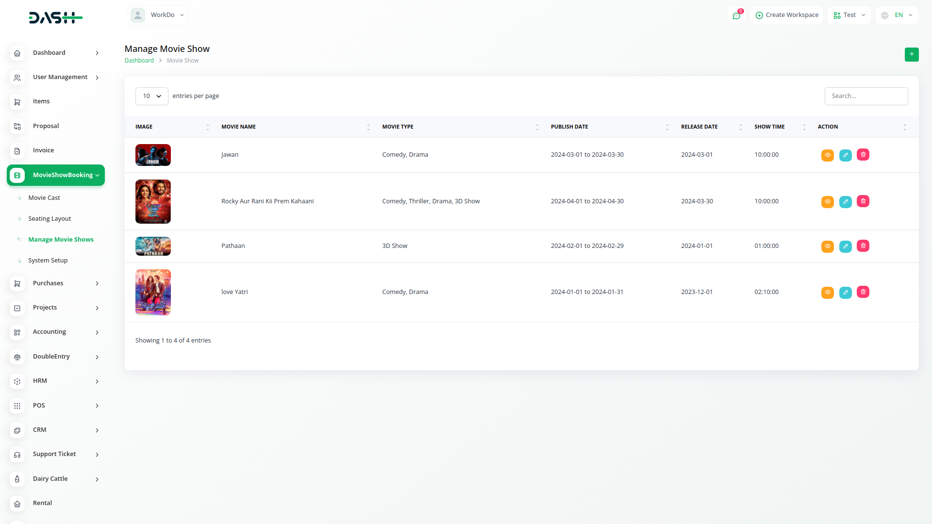 Welcome to Dash SaaS Movie Show Booking Management Integration, your comprehensive solution for streamlined movie theater operations. With our specialized module, you can effortlessly access movie cast information, customize seating layouts, manage movie shows, and configure your system setup all from one convenient platform.