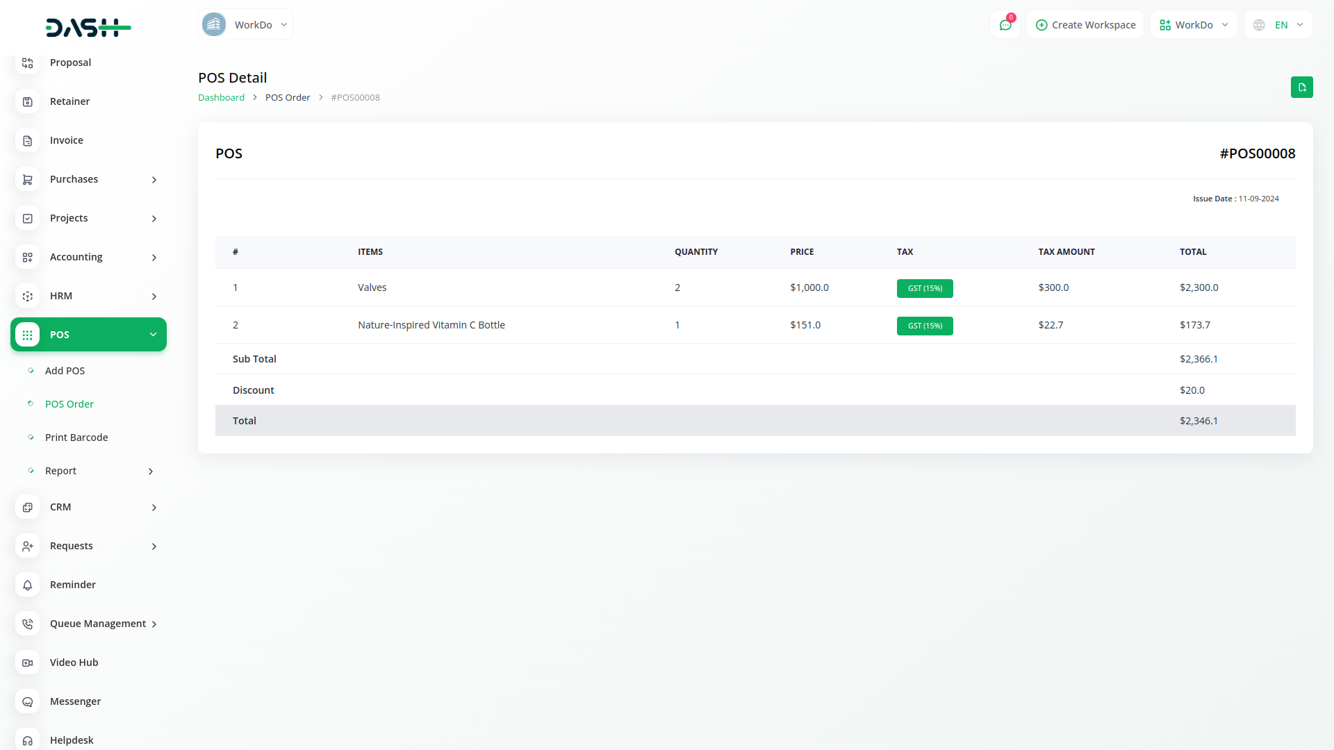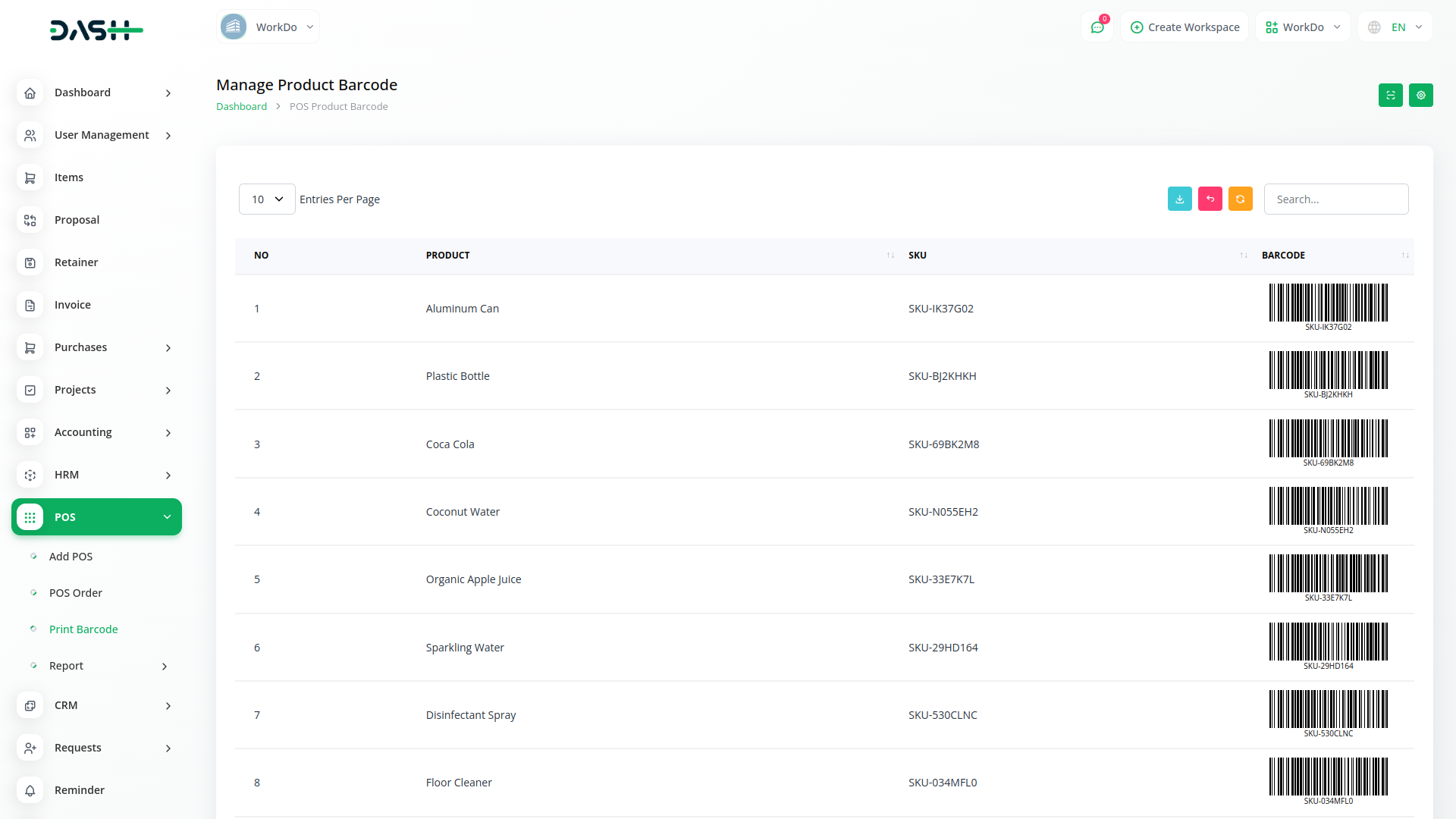 Enhance efficiency in your sales workflow with POS is streamlined barcode printing feature. Easily generate barcodes for products and orders by selecting items and specifying quantities. This functionality simplifies inventory management and accelerates checkout processes. Improve operational productivity by swiftly printing as many barcodes as needed, empowering your business to meet customer demands effectively. Experience convenience and flexibility with Dash SaaS POS is barcode printing capability, tailored to optimize your sales operations.