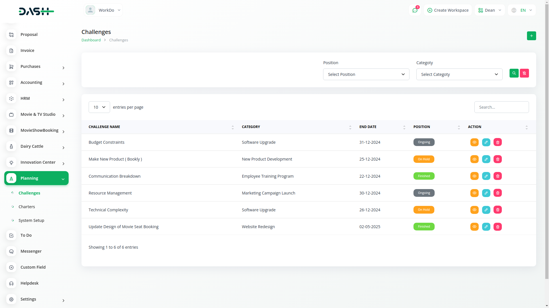 The Planning Module of Dash SaaS offers a centralized hub for efficiently managing challenges and charters. Gone are the days of juggling multiple documents and struggling to keep track of progress. With the Planning Module, you can easily create, update, and monitor your challenges and charters in one intuitive platform. From defining objectives to tracking milestones, our module empowers you to stay organized and focused on achieving your goals.