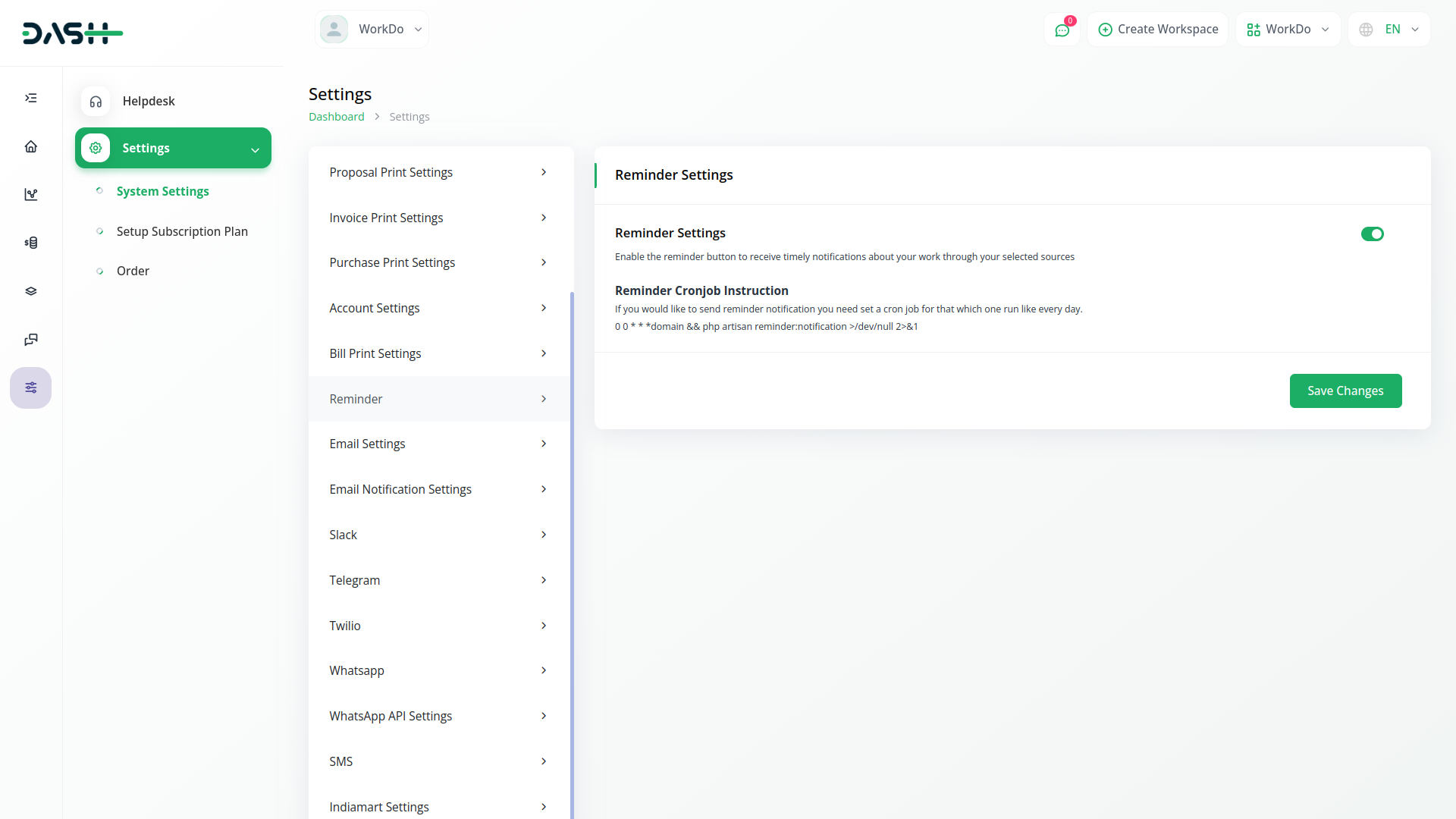 The Reminder Module of Dash SaaS provides a simple yet powerful tool for managing your reminders. With this feature, you can create new reminders as needed and select from various sources through which you want to receive them.