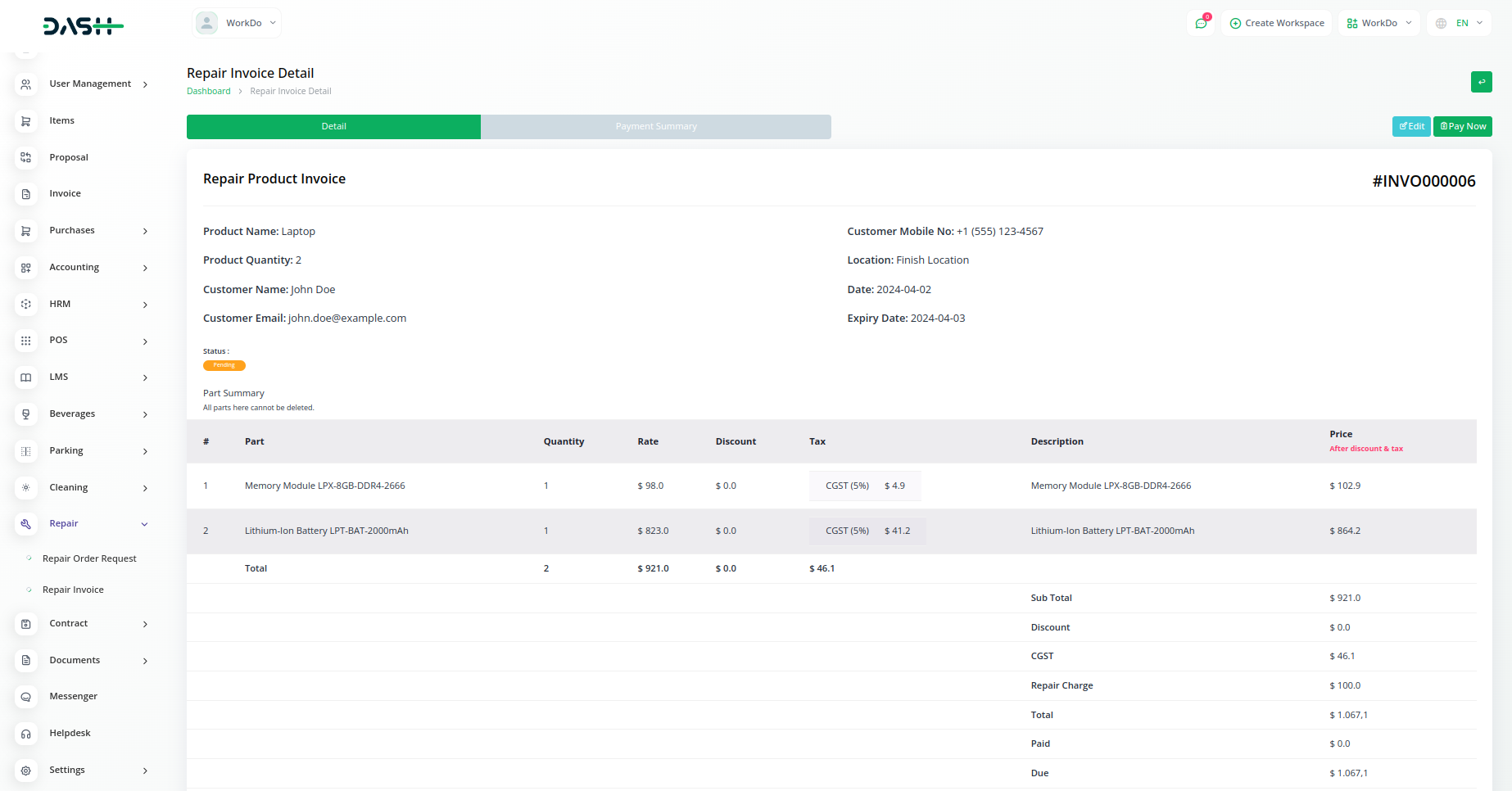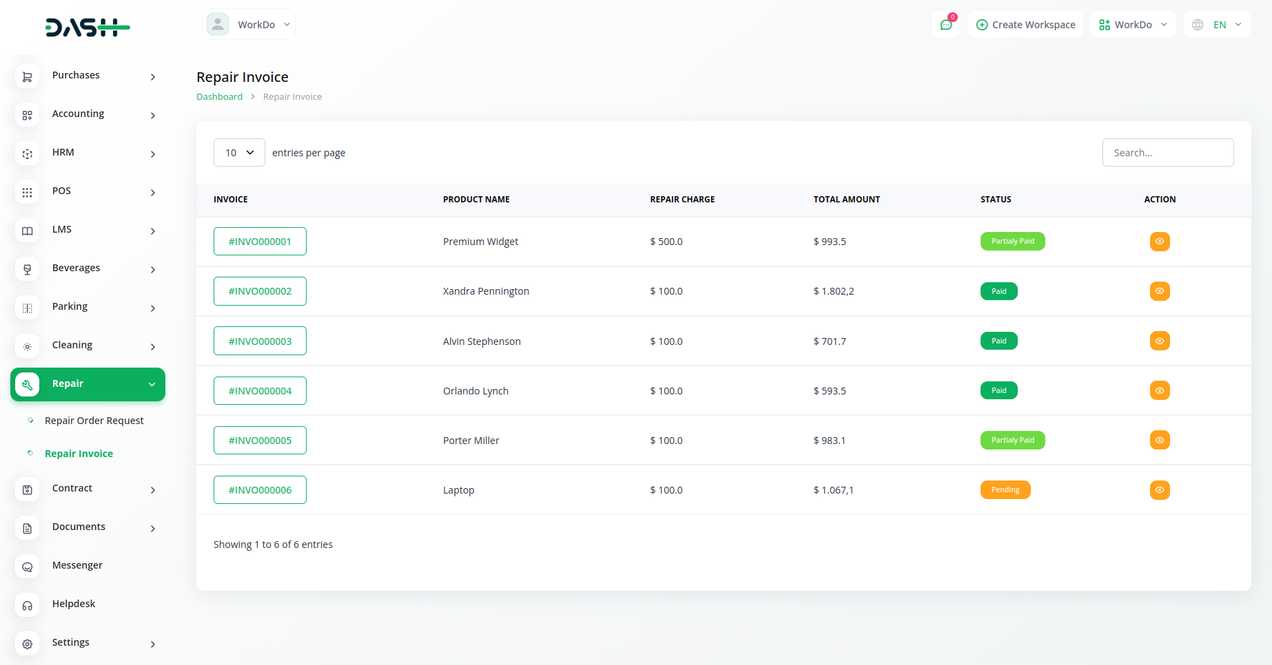You are introducing the Repair Management Integration module in Dash SaaS, a cutting-edge solution designed to streamline your repair order processes and simplify invoicing tasks. With this module, you can access powerful tools that enhance efficiency and improve productivity in your repair operations.