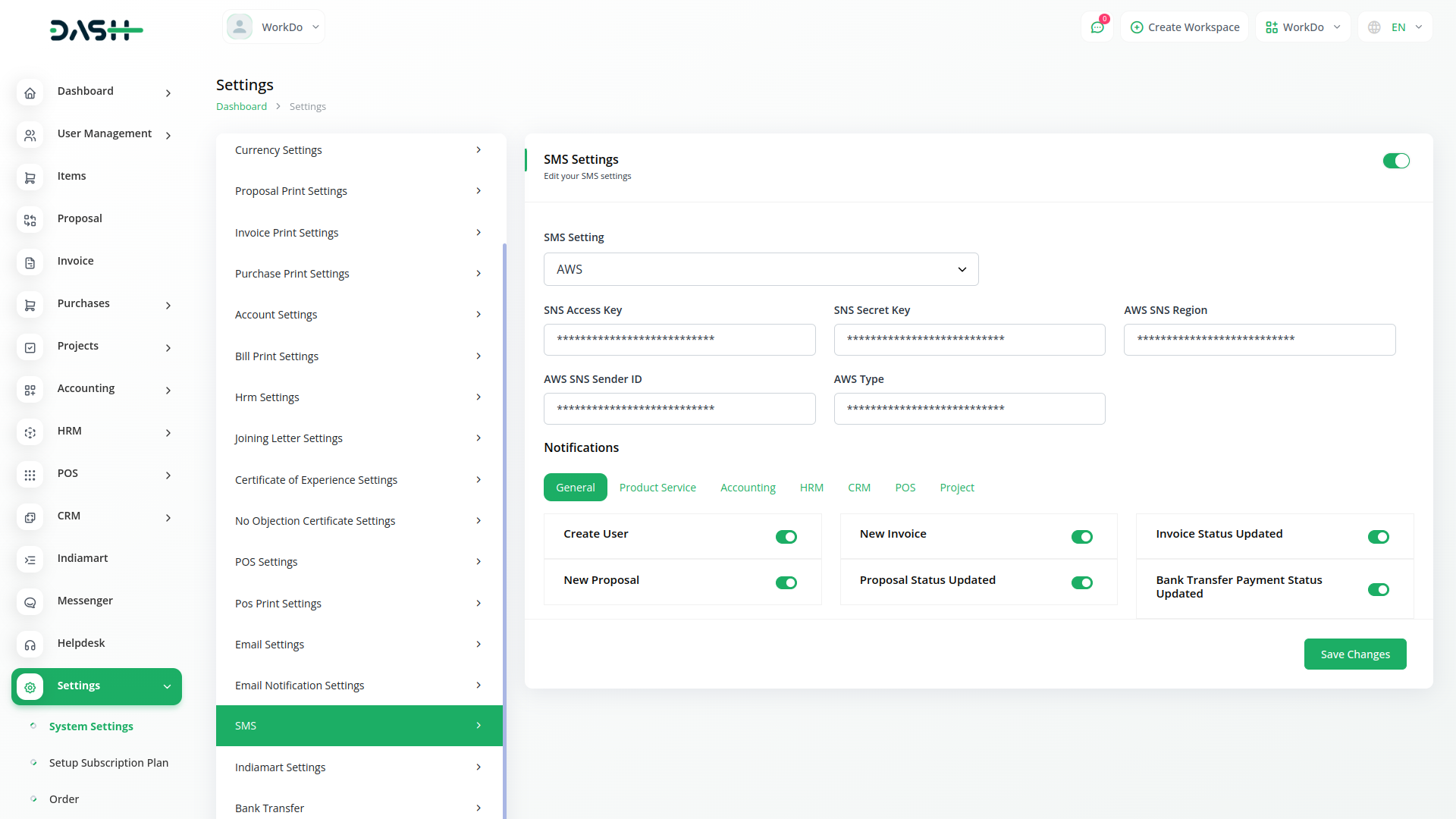 SMS Notification With Workdo Dash