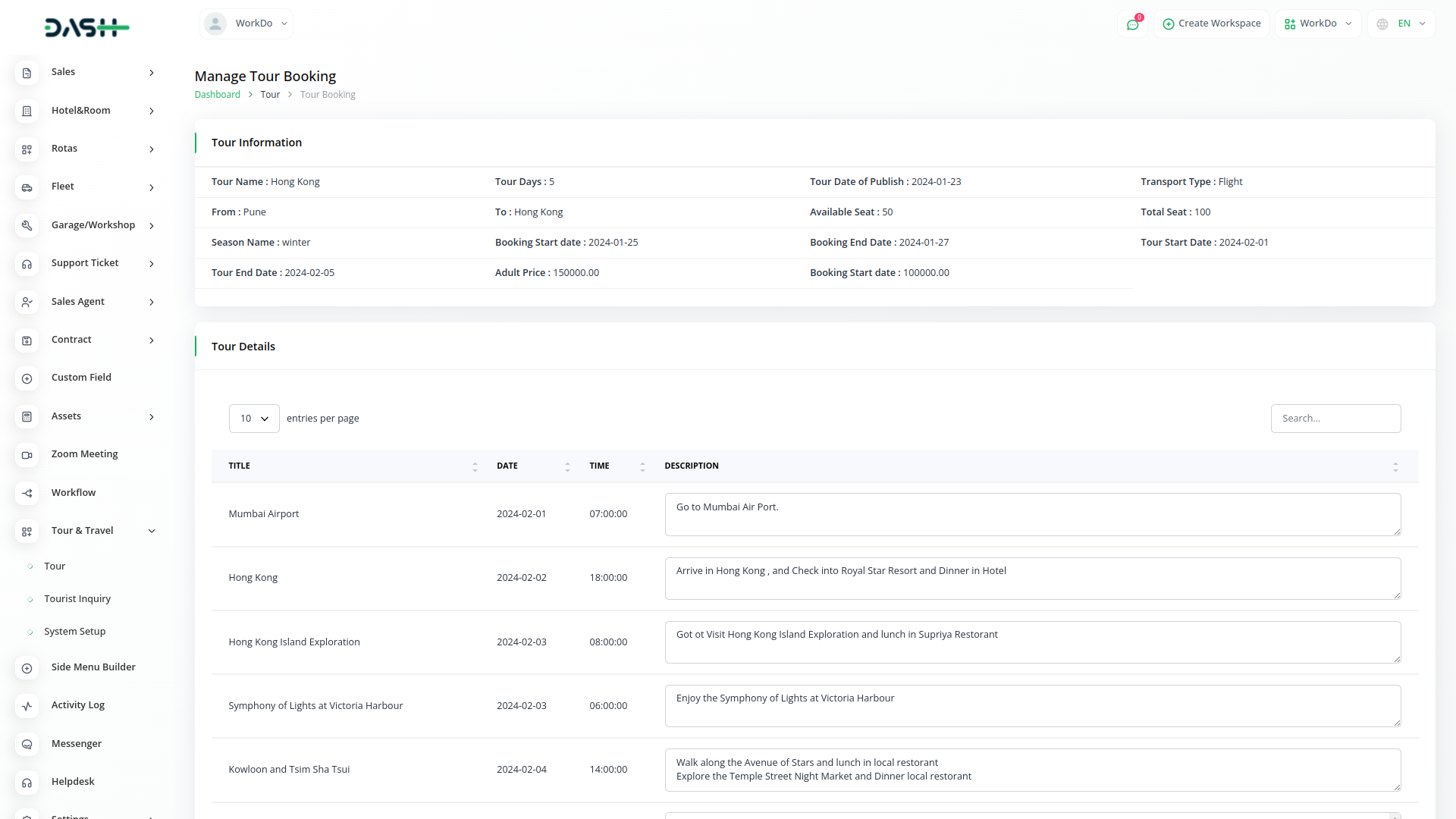 Embark on a seamless journey of travel management with Dash SaaS's Tours & Travels Module. This feature-rich tool empowers you to effortlessly create tours, monitor bookings, and manage payments, making your travel business a stress-free adventure.