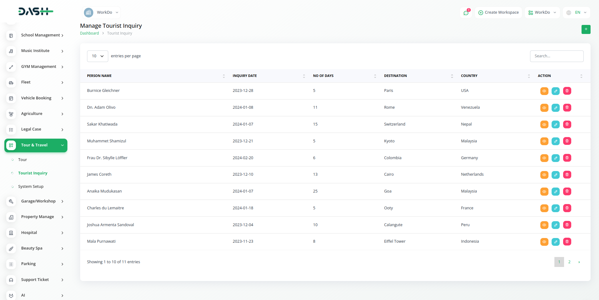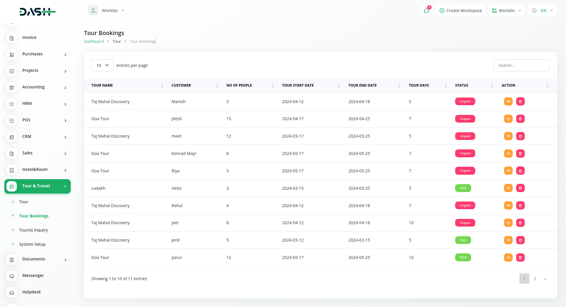 Crafting exciting tours and managing hotel bookings is now easier than ever with Dash SaaS. The Tours & Travels Management Module provides a user-friendly interface where you can effortlessly create captivating travel itineraries and book accommodations seamlessly. Tailor your tours and hotel stays with ease, ensuring a delightful experience for your clients and making your travel business stand out. You will only be able to book hotel rooms if you have already purchased the Hotel and Room Management Module.