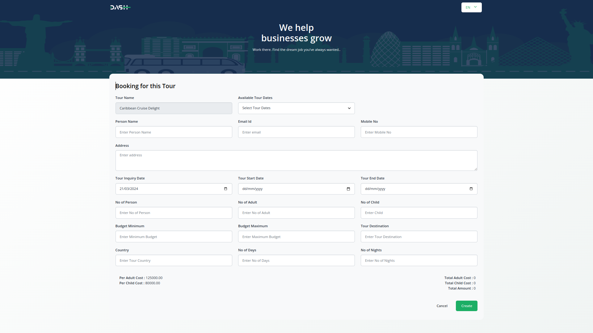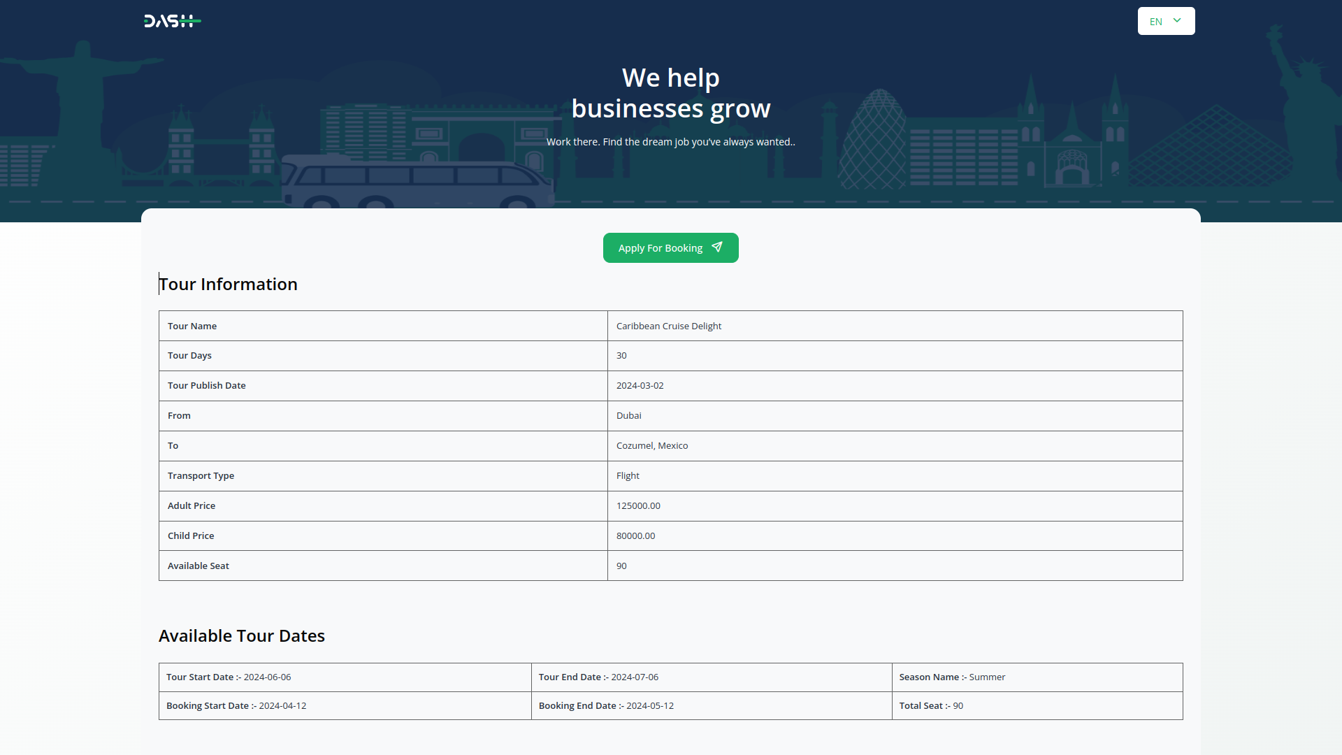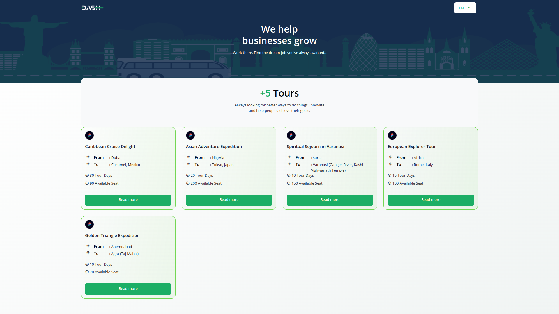 Explore stress-free travel management with Dash SaaS. Easily create captivating tours, monitor bookings in real-time, and manage payments seamlessly – making your travel business a delightful journey for all.