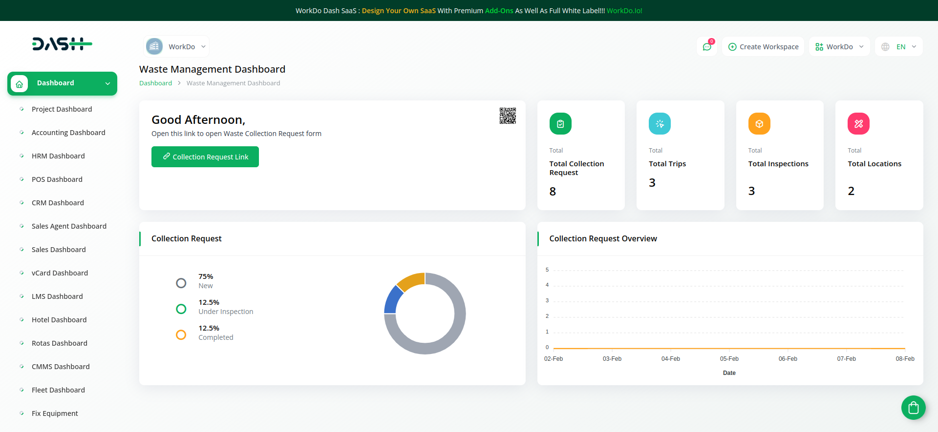 The Waste Management System module is a comprehensive solution designed to streamline waste collection processes for businesses and municipalities. From submitting collection requests to managing inspections, our module offers end-to-end functionality to optimize waste management operations.