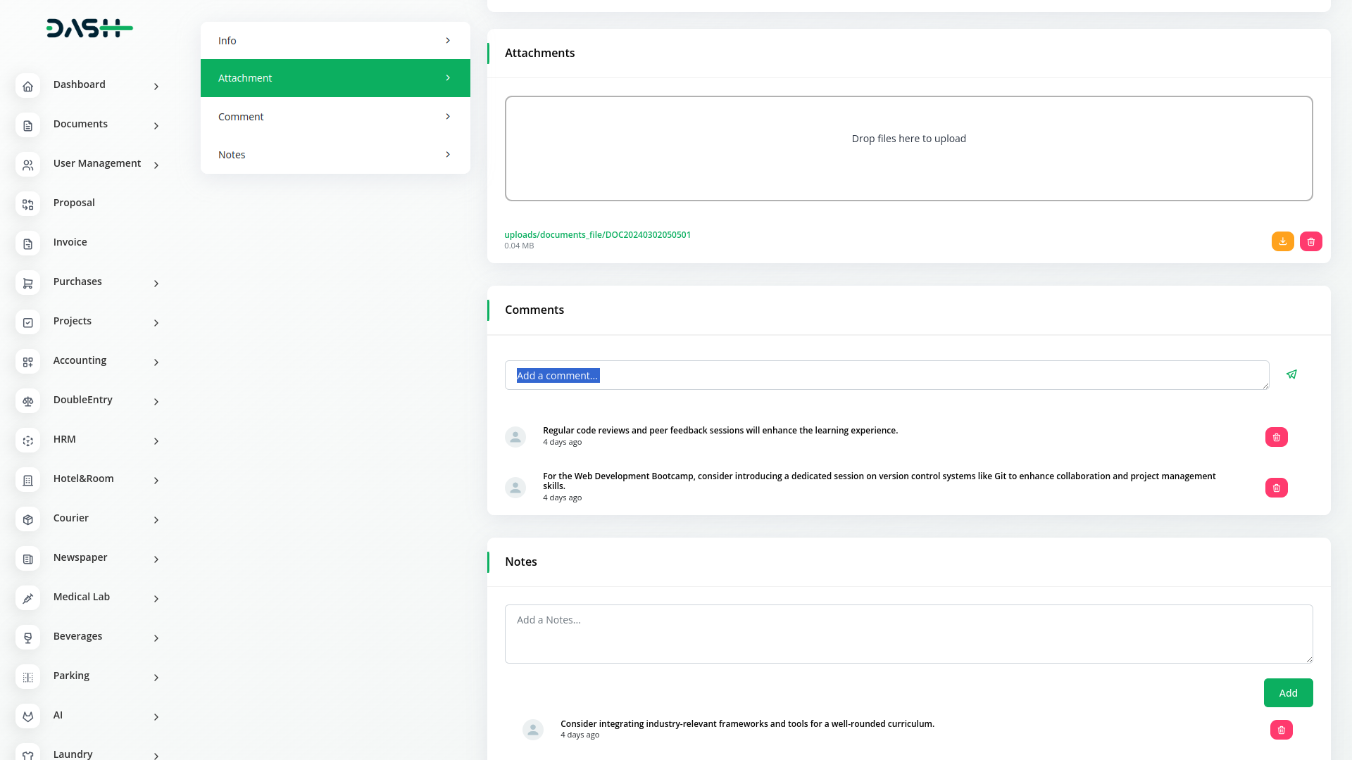 Documents Integration also allows you to add notes to your documents, providing additional context and insights as needed. Whether it's important reminders, key points, or additional information, you can include notes directly within the document interface for easy reference. Enhance the usability and clarity of your documents with the ability to add notes as needed.