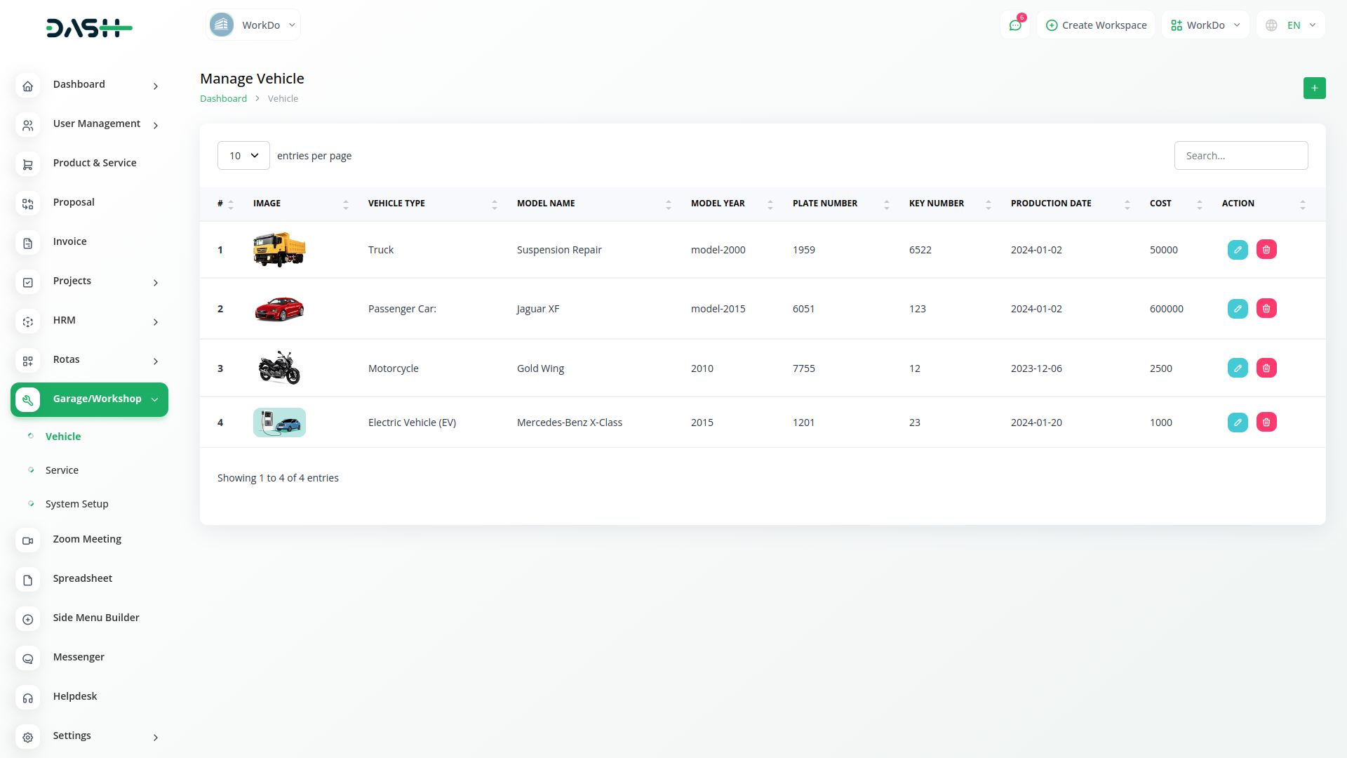 Garage/workshop management system streamlines operations by allowing seamless creation and tracking of vehicles and services. Effortlessly input vehicle specifics like make, model, and year for informed decisions. Define services with names, descriptions, and costs, aiding transparent cost estimation. This unified system catalogues services, empowering efficient workshop management and elevating customer satisfaction.