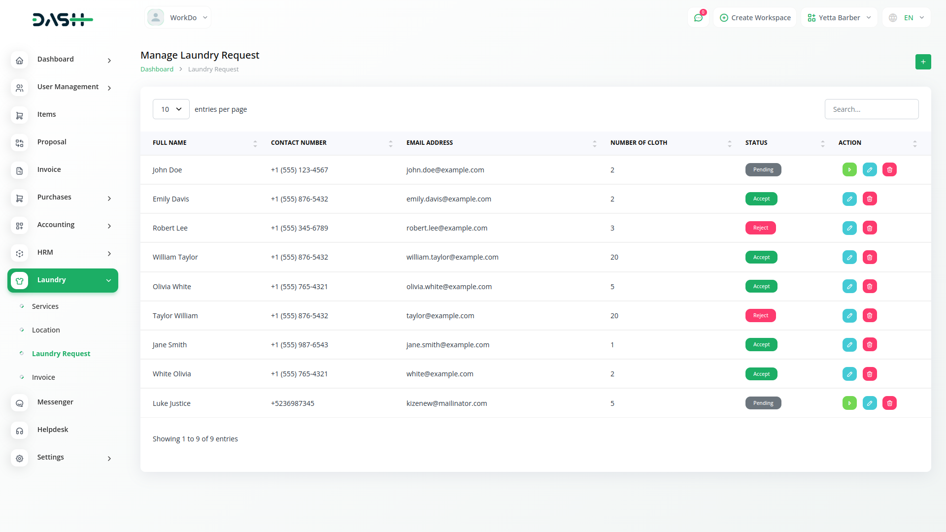 Transforming Laundry Operations: Revolutionize garment care with Laundry Management Integration, providing seamless request handling,and powerful backend tools to set a new standard in the laundry service industry.