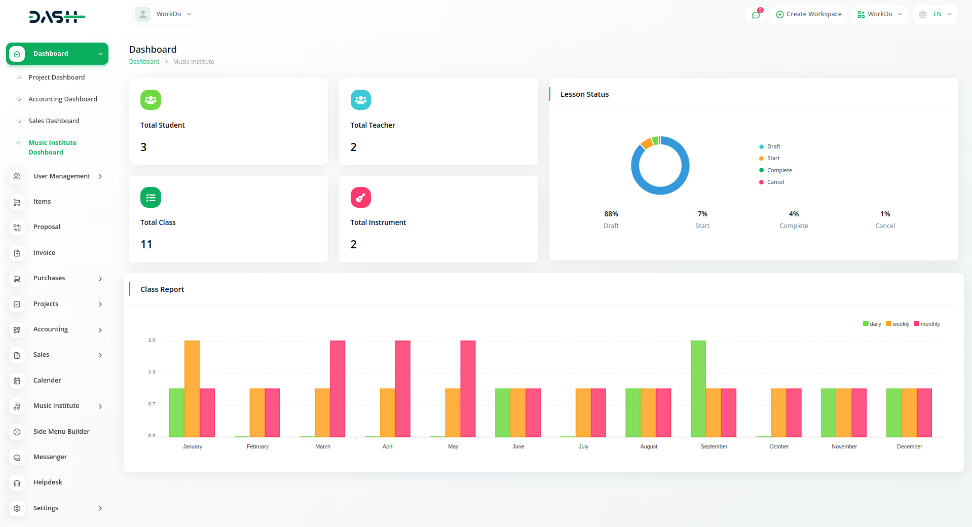 Meet Dash SaaS`s new Music Institute Module! It`s is like a super cool tool that helps music teachers and students have a fantastic time learning and playing music together. Let`s find out what makes it so awesome!f