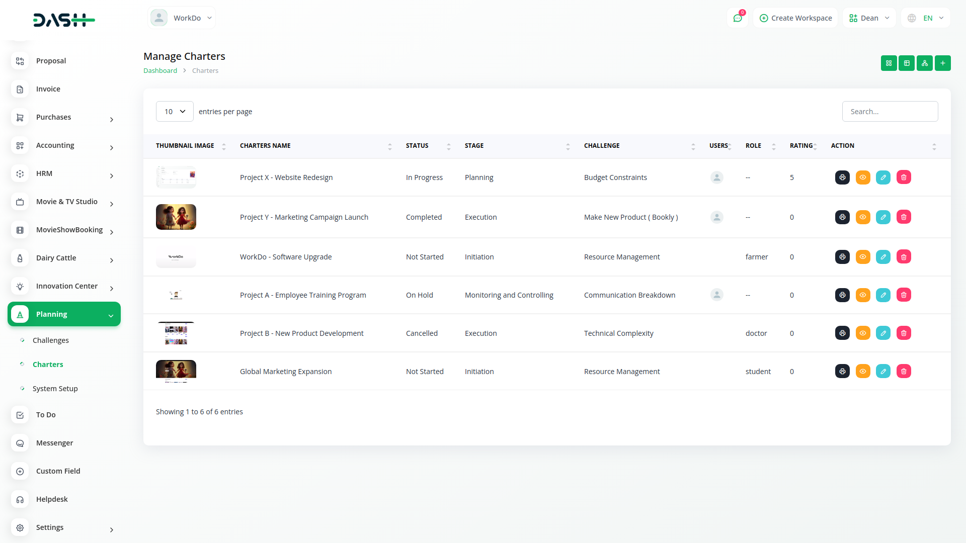 The Planning Module of Dash SaaS offers a centralized hub for efficiently managing challenges and charters. Gone are the days of juggling multiple documents and struggling to keep track of progress. With the Planning Module, you can easily create, update, and monitor your challenges and charters in one intuitive platform. From defining objectives to tracking milestones, our module empowers you to stay organized and focused on achieving your goals.