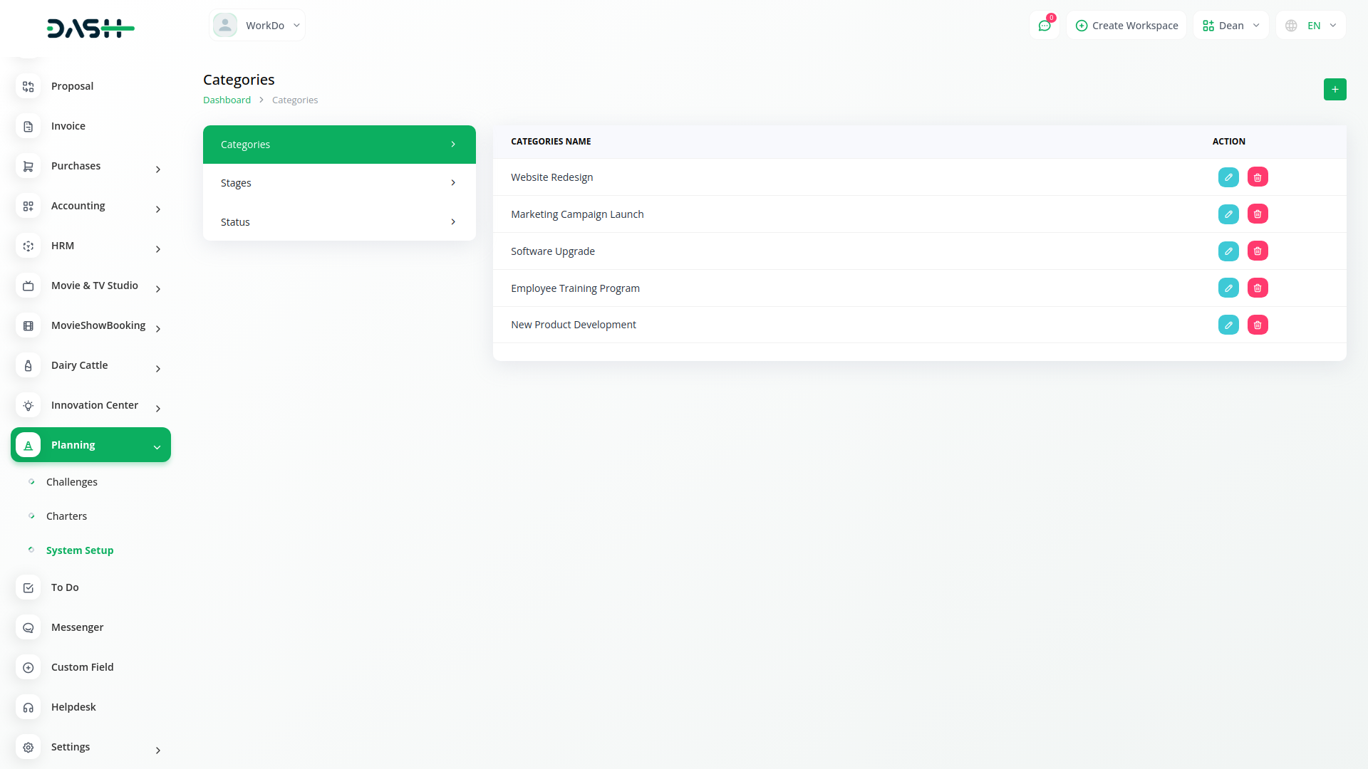 Customize your planning environment to align with your unique needs using the Planning Module of Dash SaaS system setup page. Easily add new categories, stages, and statuses to tailor the module to your specific workflow. Whether you are implementing industry standards or internal processes, our flexible setup ensures that the Planning Module adapts seamlessly to your requirements. Take control of your planning infrastructure and optimize efficiency with a system that evolves alongside your business.