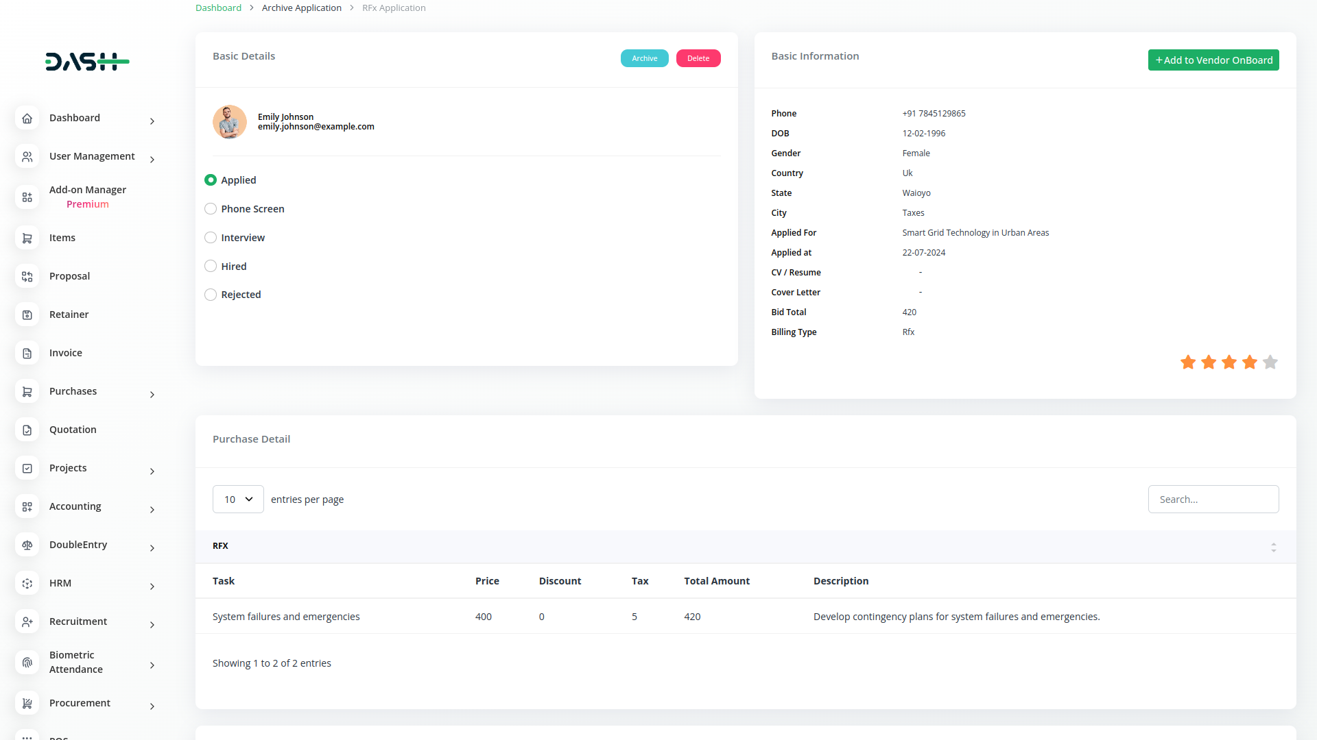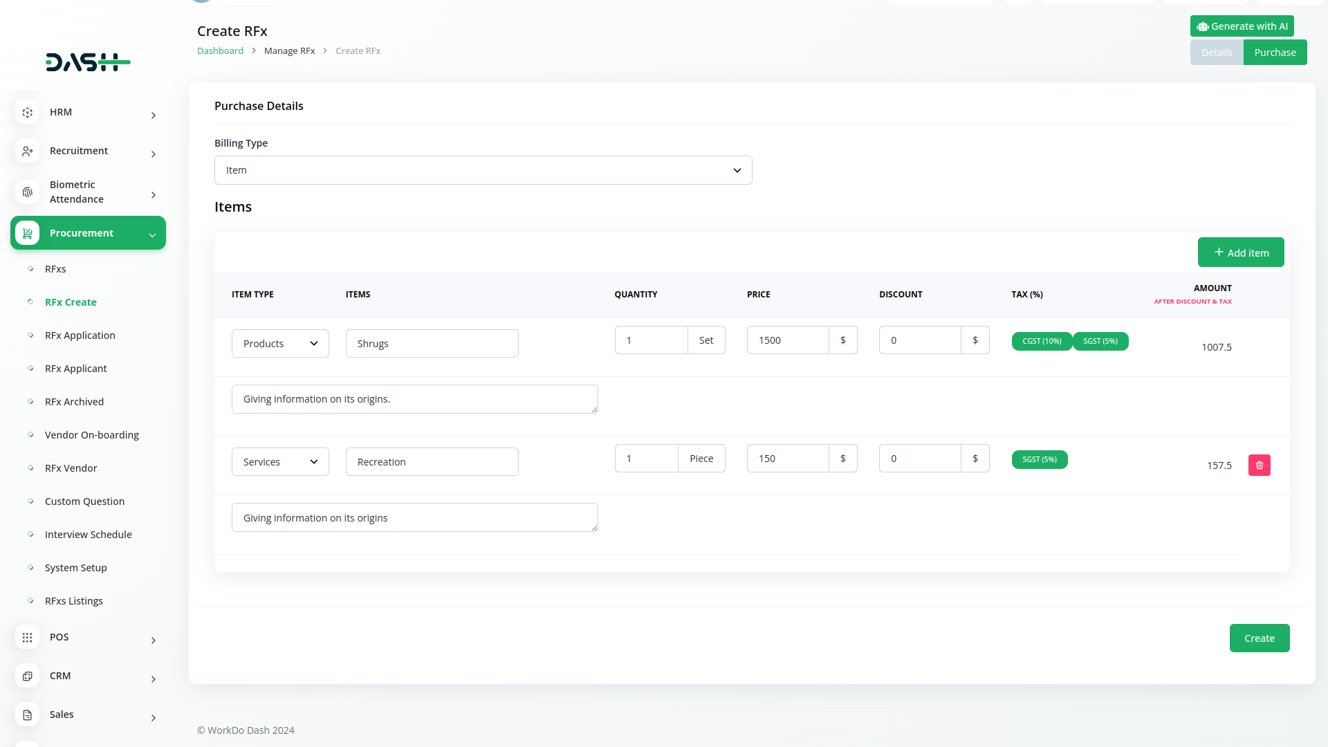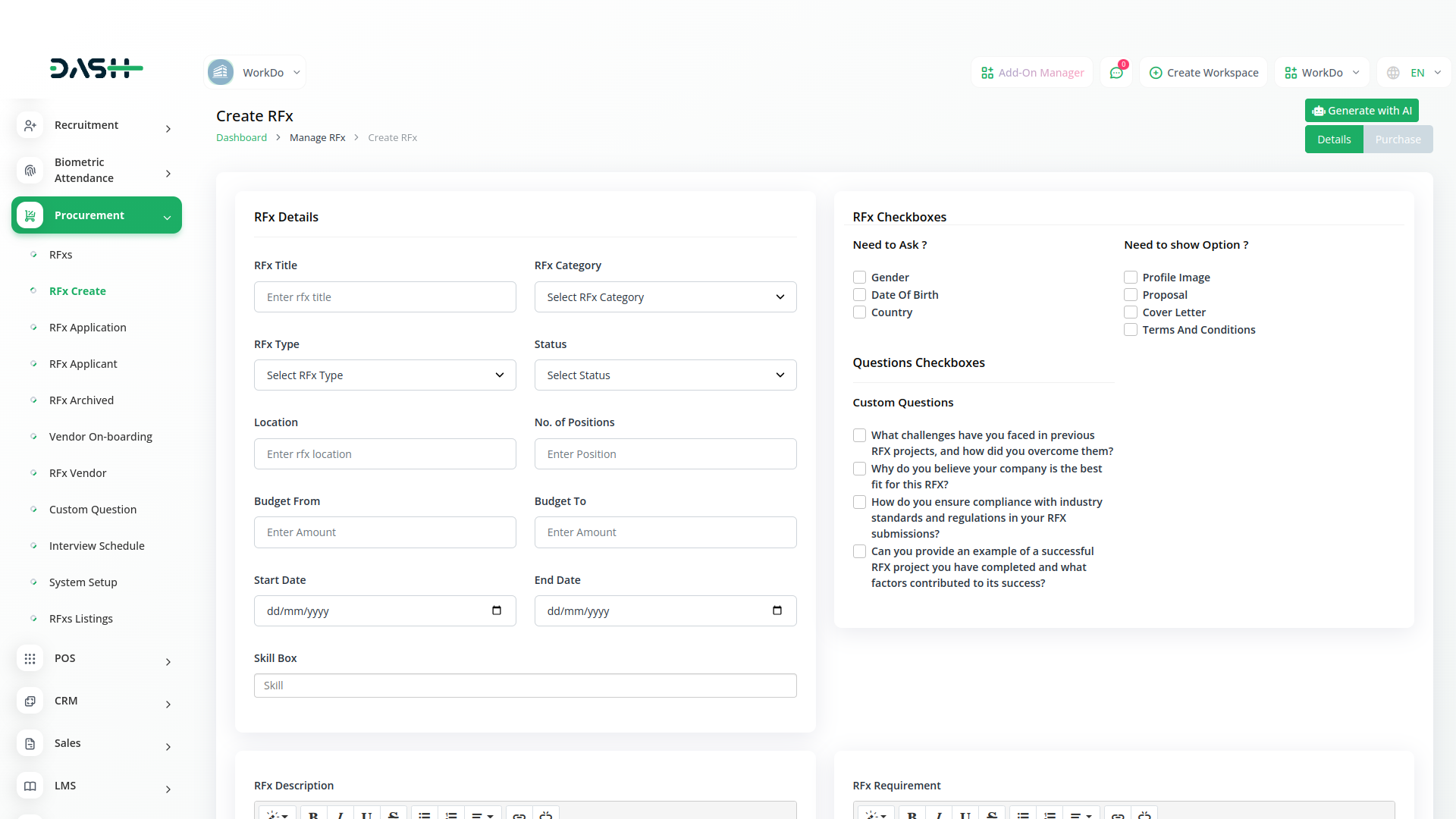 Ensure compliance with organizational policies and regulatory requirements using Dash SaaS`s robust procurement module. Maintain comprehensive records of all procurement activities, including approvals, transactions, and communications. This centralized record-keeping not only simplifies audit processes but also enhances transparency and accountability across your procurement operations..