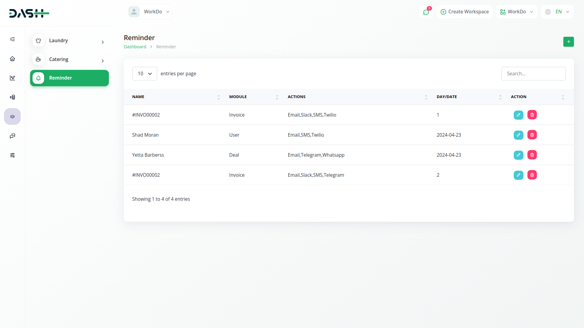 The Reminder Module of Dash SaaS provides a simple yet powerful tool for managing your reminders. With this feature, you can create new reminders as needed and select from various sources through which you want to receive them.