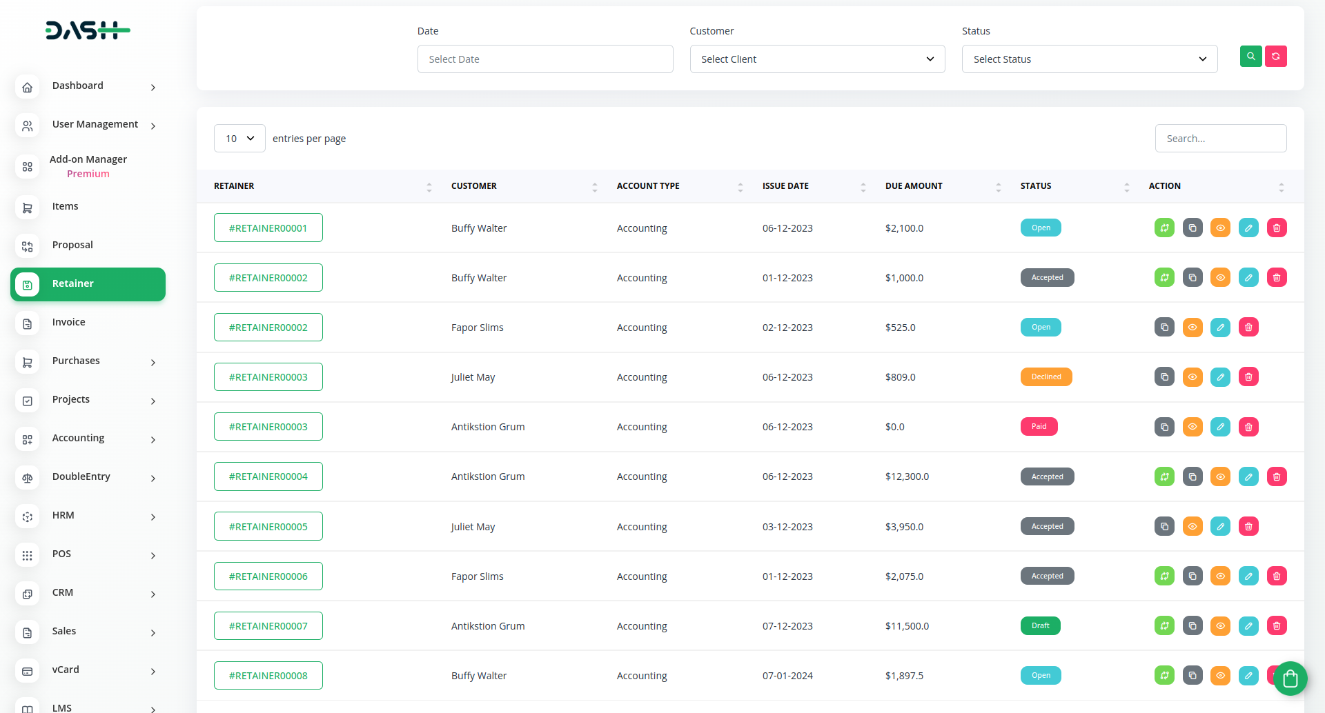 Retainer invoices are documents the firm can provide to the client to ask for funds prior to the project starting. Its a method of securing services for use when required. In other words, its a form of deposit or pre-payment.