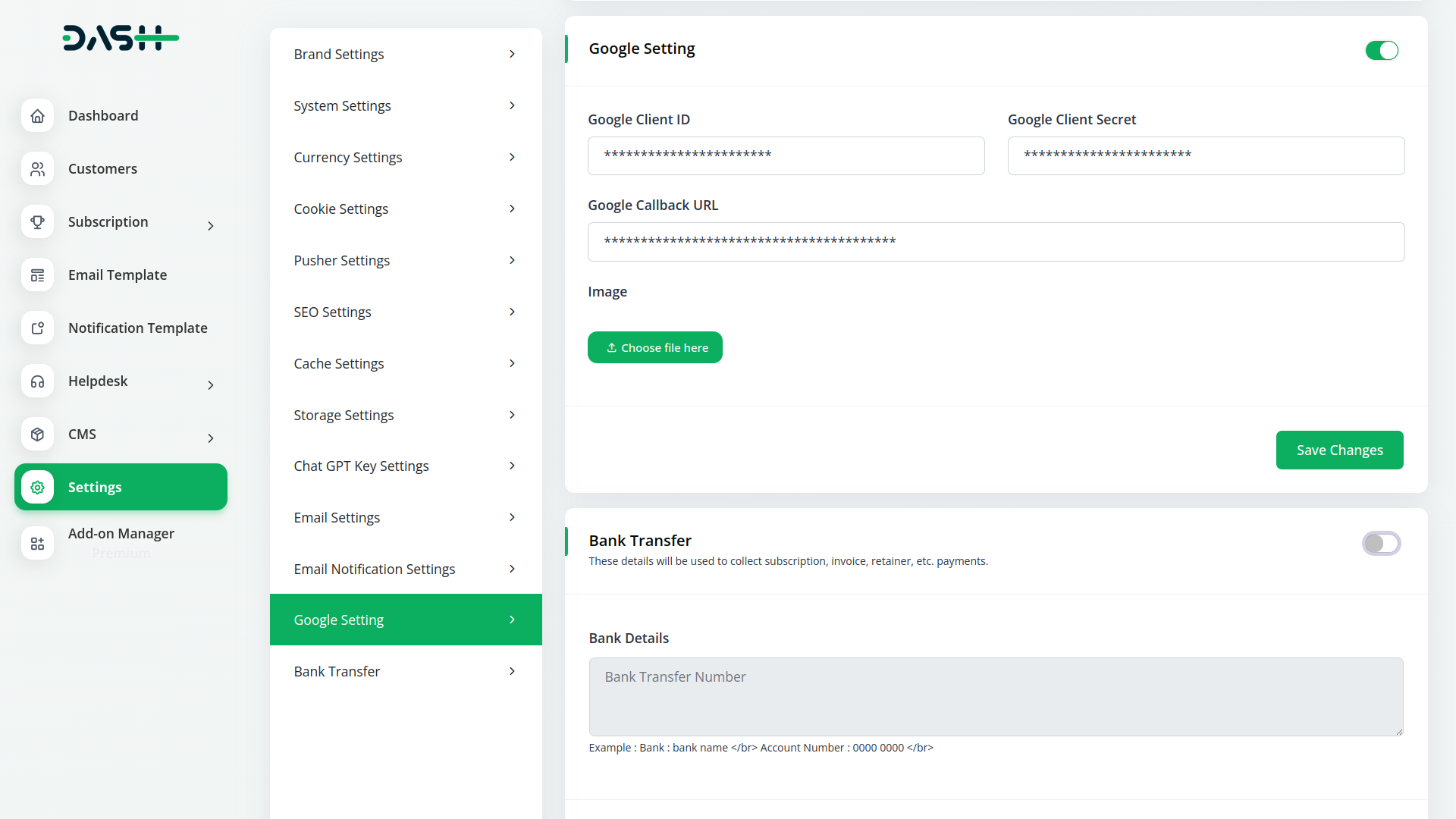 Effortlessly log in with your Google account using Dash SaaS`s Sign-In with Google module.